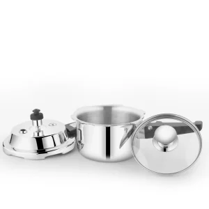 Vinod Stainless Steel Deluxe Multikadai 26CM With 6 Plate (2 IDLI, 1 Mini Idli, 2 Dhokla, 1 Steamer or Patra Plate) 6in1 Combo, Idli, Dhokla, Momos Maker & Steamer Combo