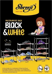 Shreeji Black & White 5 Layer Multipurpose Rack | Strong Plastic Shoe & Storage Organizer for Home