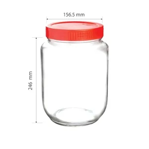 Yera Glass Aahar Round Jar with Red Colour Airtight Plastic Lid ( Available sizes JR150, JR250, JR500, JR750, JR-1, JR-1.5, JR-2, JR-3, JR-4, JR-5)