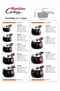 Hawkins Hard Anodised Contura Black Pressure Cooker | Inner Lid | Gas Stove Friendly | Sizes Available 1.5L | 2L | 3L | 5L | 6.5L