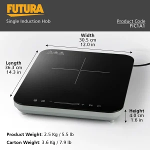 Cook faster and smarter with the Futura Single Hob Induction Cooktop (2000W). Designed for efficient, safe, and modern cooking with precise temperature control and low power consumption.