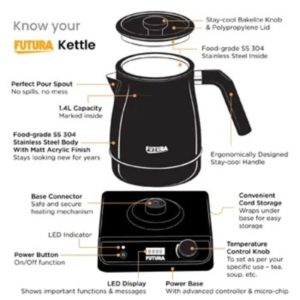 The Futura Electric Kettle is a sleek, efficient, and durable appliance designed for quick boiling. With a powerful 1500W heating element, stainless steel body, and automatic shut-off feature, it ensures safe and convenient use every time. Ideal for boiling water, making tea, coffee, or instant noodles, it’s the perfect addition to modern kitchens, offices, and hostels.