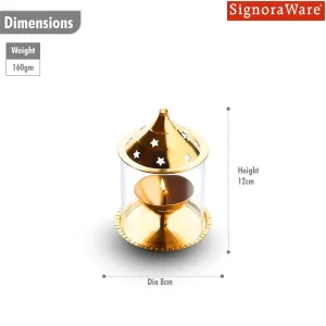 Enhance your spiritual space with the Signoraware Akhand Diya Medium Brass with Glass Cover. Made from premium brass and covered with a durable glass chimney, this diya burns steadily for long hours—ideal for daily prayers, meditation, and festive décor.