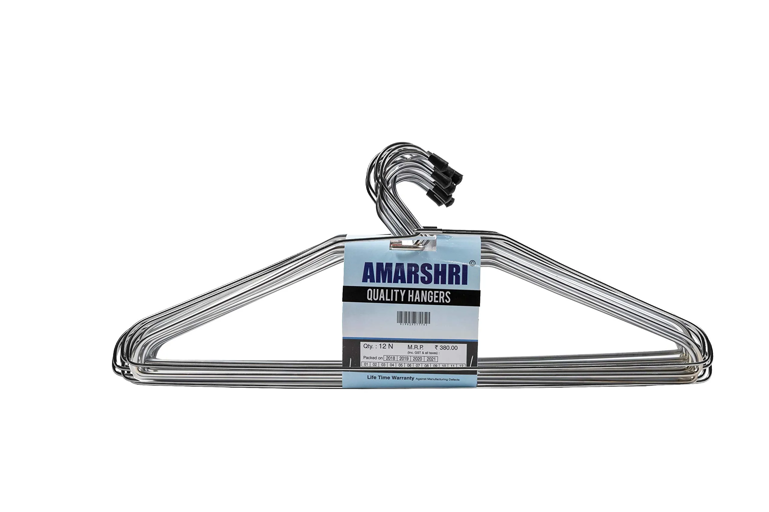 The Amarshri Cloth Hanger Black Cap 15″ (Pack of 12) is made from durable mild steel for long-lasting strength and stability. Designed with black end caps for a sleek look and smooth edges, these hangers prevent clothes from slipping or snagging. Ideal for shirts, trousers, coats, and everyday garments.