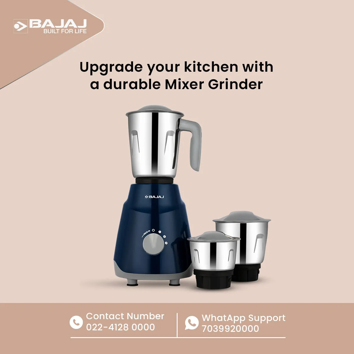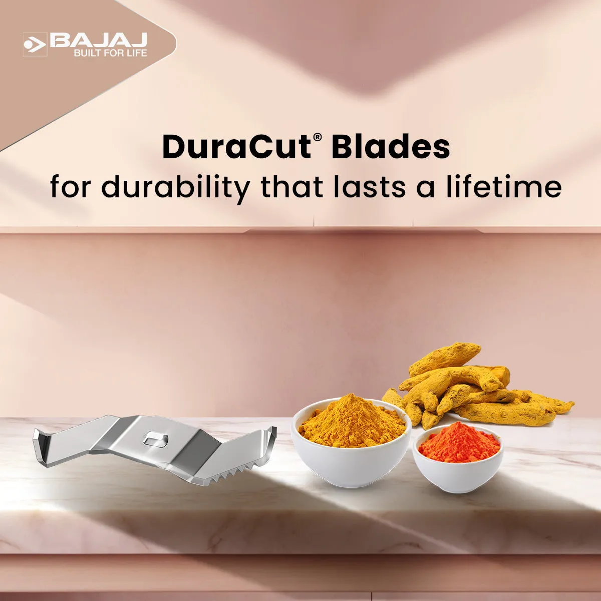 The Bajaj GX1 Ninja Series 500W Mixer Grinder delivers fast and efficient grinding with its powerful motor and 3 stainless steel jars. Perfect for chutneys, masalas, smoothies and daily kitchen needs, it ensures durability and smooth performance every day.