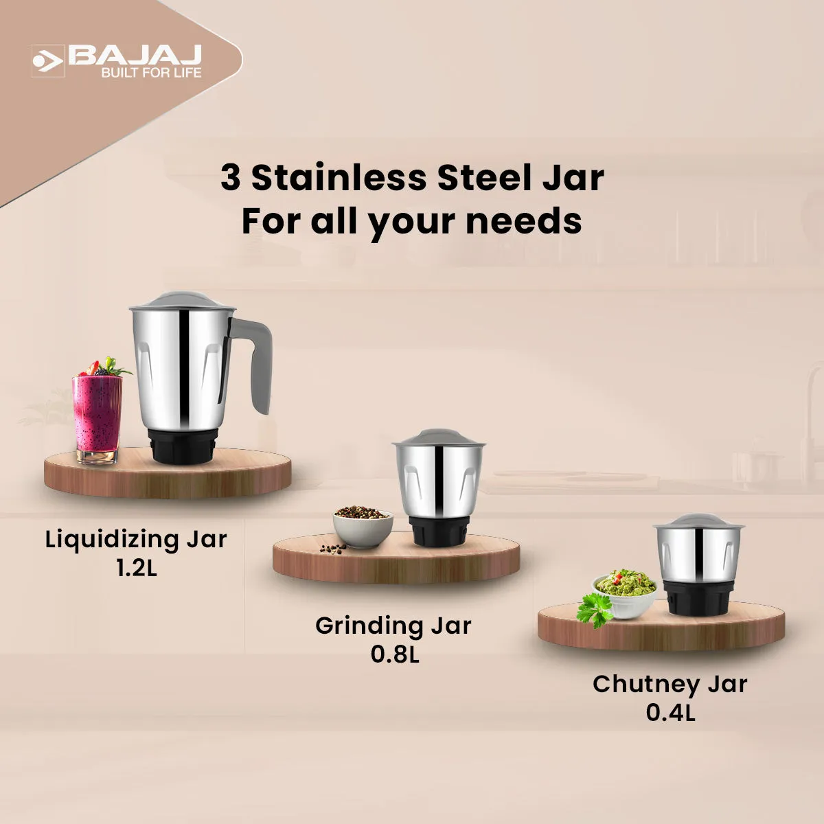 Bajaj GX1 Ninja Series 500W Mixer Grinder | 3 Jars | Powerful & Compact | 2 Year Warranty On Motor*