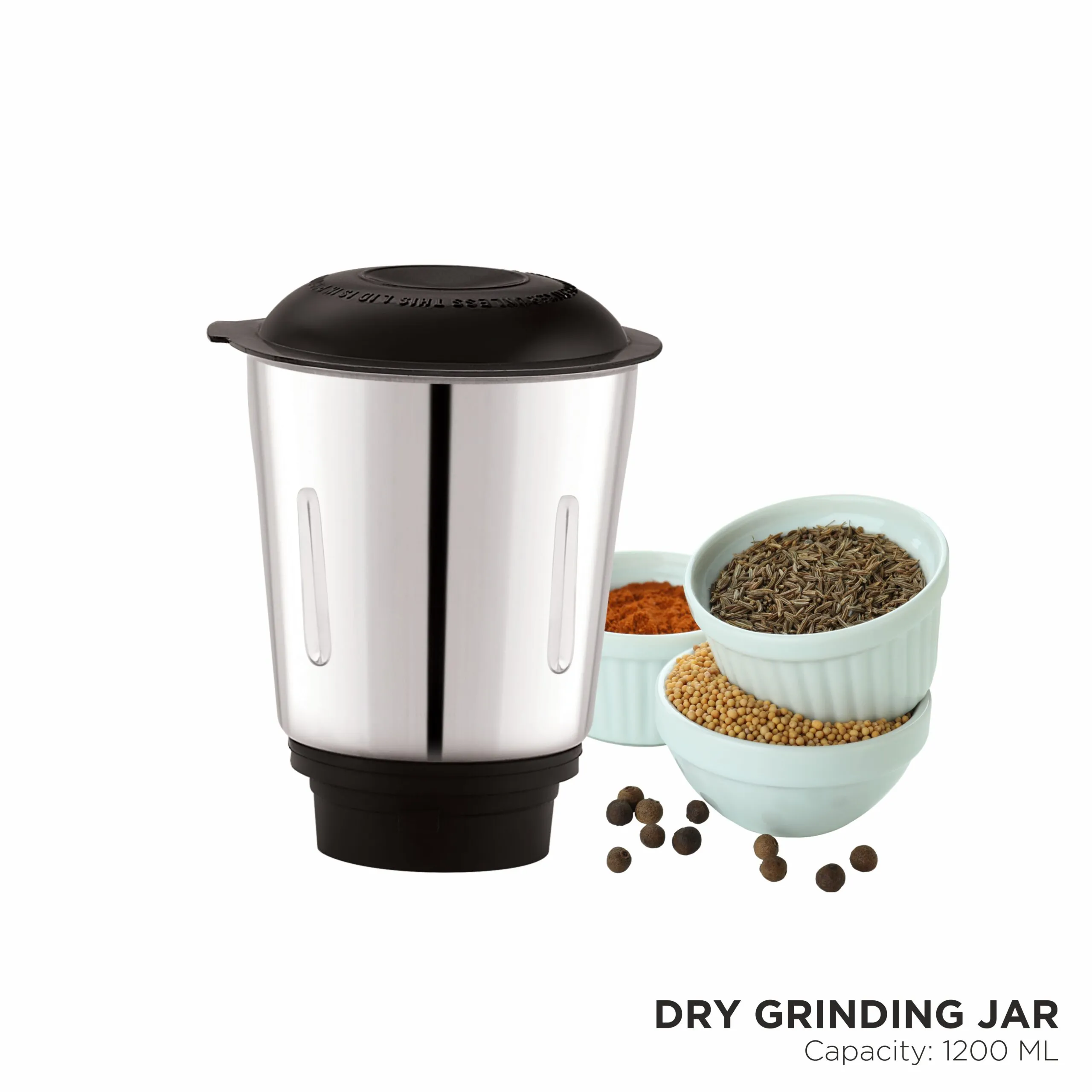 • 3 High-Grade Stainless Steel Jars for wet grinding, dry grinding, and chutneys.