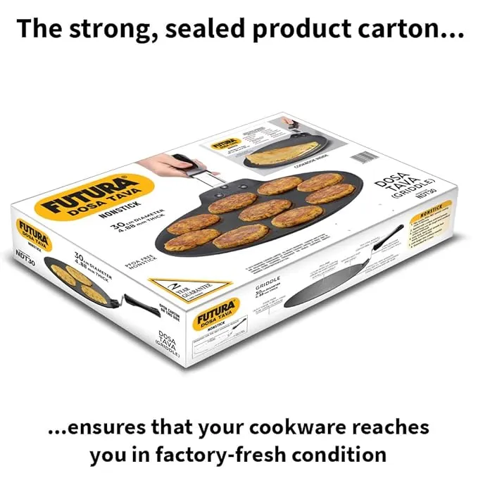 Hawkins Futura Nonstick Dosa Tava 30 cm (NDT30) – 4.88 mm thick heavy-gauge aluminium tava with superior nonstick coating for perfect, crisp dosas every time. Durable, easy to clean, and energy-efficient for everyday cooking.