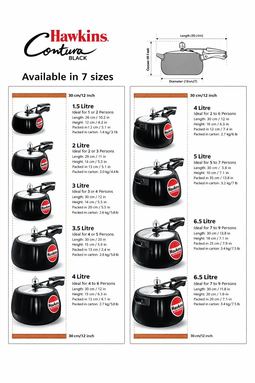 Hawkins Hard Anodised Contura Black Pressure Cooker | Inner Lid | Gas Stove Friendly | Sizes Available 1.5L | 2L | 3L | 5L | 6.5L