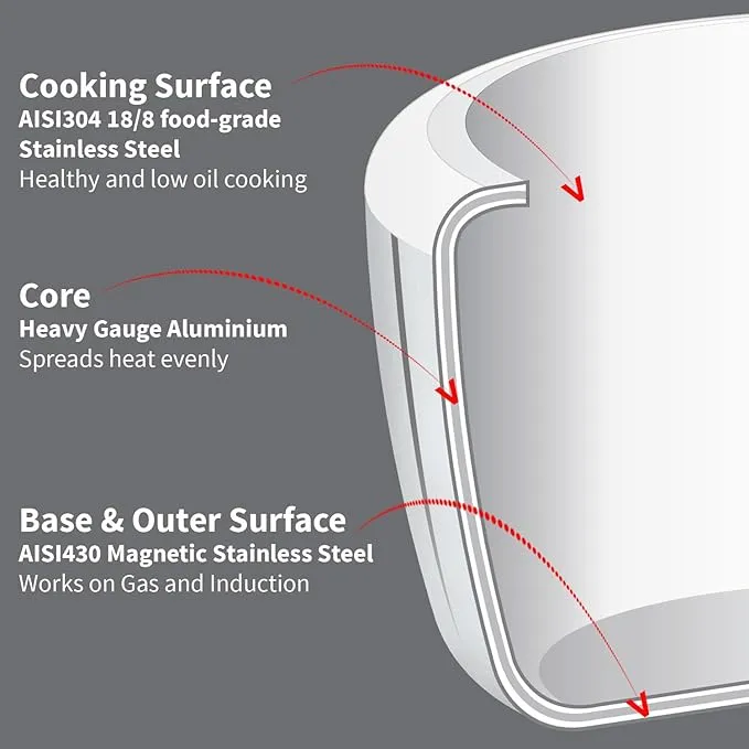 • Induction & Gas Compatible: Works efficiently on both gas stoves and induction cooktops.