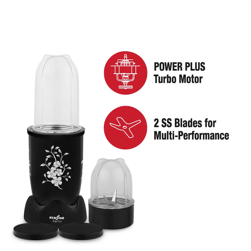 The Kenstar Nutri Blender BYSTRO B (400W) is a compact, powerful personal blender designed for smoothies, chutneys, dry grinding, and everyday kitchen needs. It comes with two unbreakable PC jars—300 ml & 500 ml—and features a turbo motor, SS blades, hands-free operation, and a shockproof body, making it ideal for fast and efficient blending.