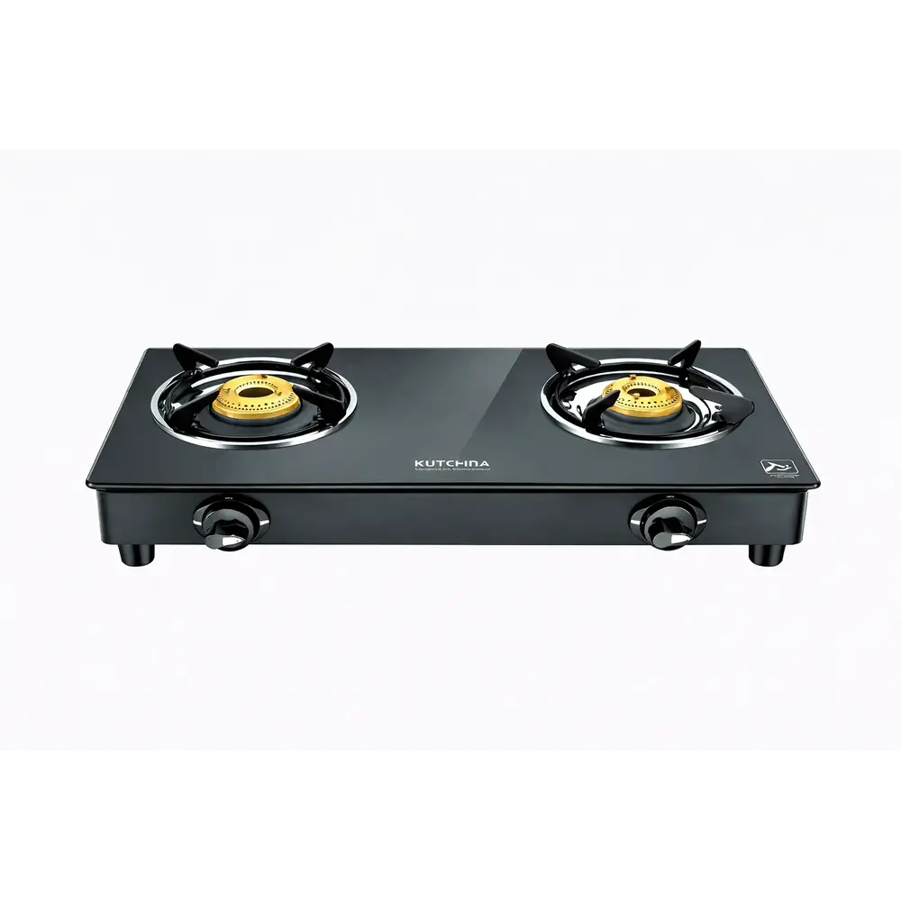 The Kutchina ECO 2B (2-Burner) Gas Stove is an efficient and stylish cooktop designed for modern Indian kitchens. Built with durable brass burners, a toughened glass top surface, ergonomic knobs and anti-skid feet, it ensures safe, stable and quick cooking for everyday meals.