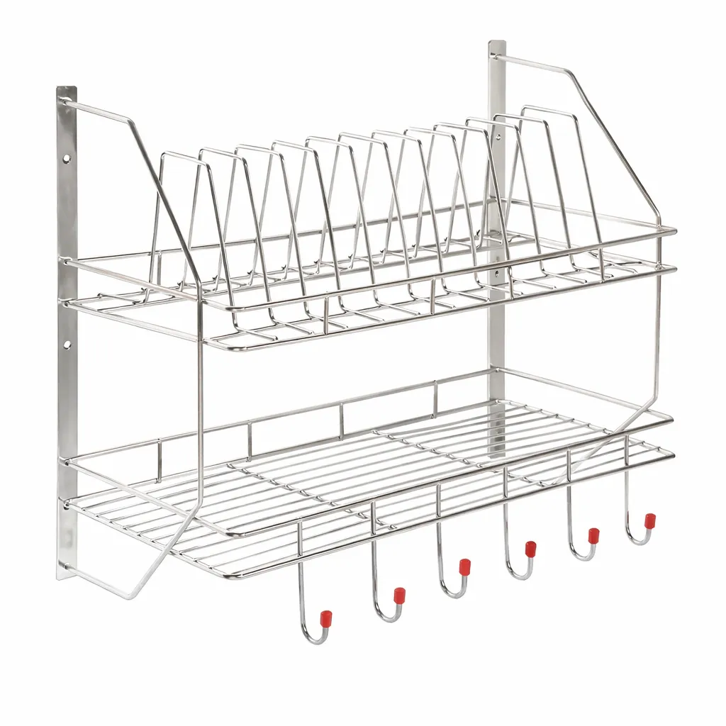 Lokseva Stainless Steel Dish Rack with integrated spoon holder for organized and hygienic storage. Made from rust-free stainless steel, ideal for plates, bowls, and cutlery—perfect for Indian kitchens.