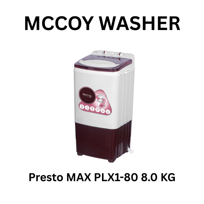 Be the first to review “MCCOY Washer Presto Max PLX1-80 8.0Kg Washer | Washing Machine”