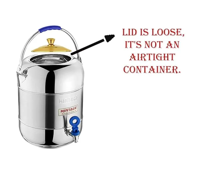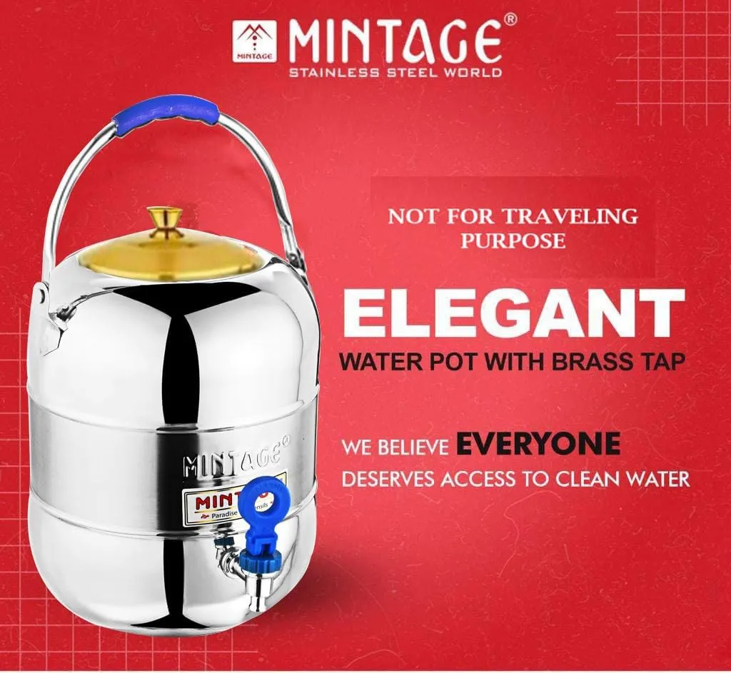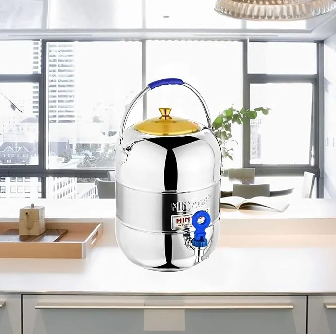 The Mintage Stainless Steel Elegant Water Matka with Tap – 25 No. (23 Litre) is designed for those who need safe, fresh, and large-capacity water storage. Made from high-quality stainless steel, it ensures durability, rust resistance, and hygienic water preservation for daily use.