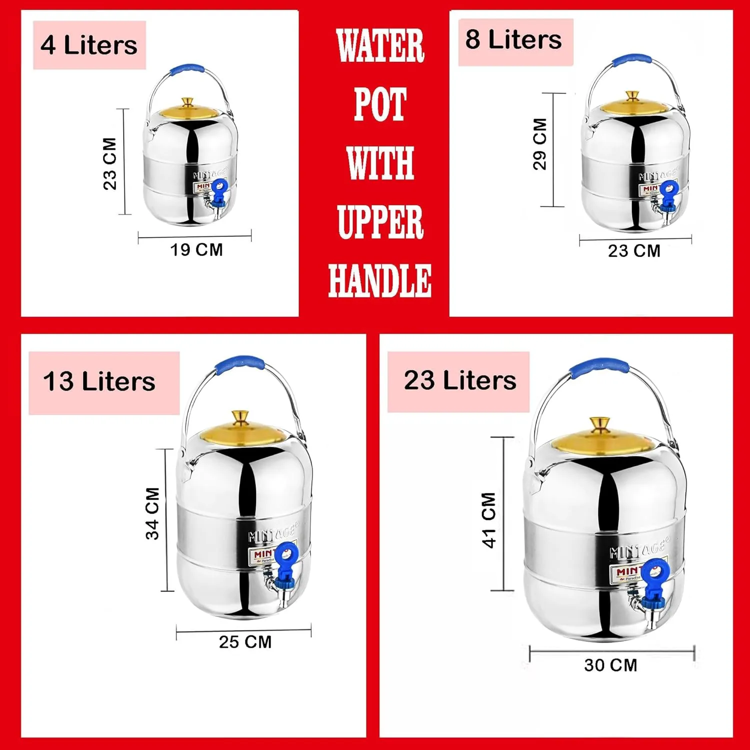 Mintage Stainless Steel Elegant Water Matka Wuth Tap 25no.( 23Litre) , Water Storage Pot Stainless Steel