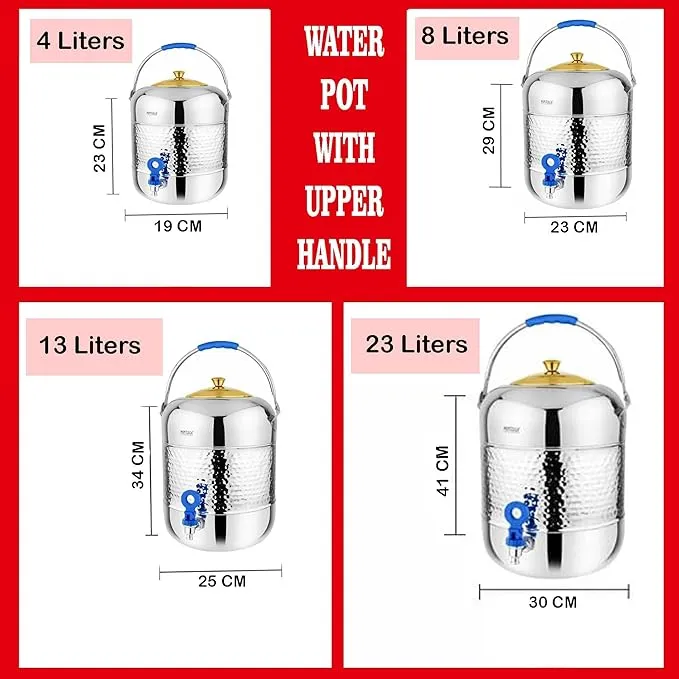 Mintage Stainless Steel Hammered Matka With Tap 25no.(23Litre), Water Storage Pot Stainless Steel