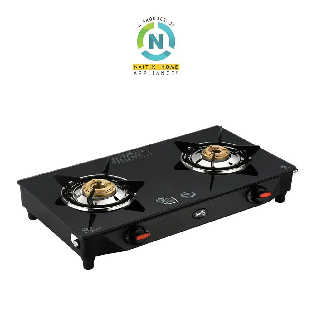 Naitik Gas Stove 2 Burner Glass Top CRYSTAL | Glass Top 2 Br Gas Stove | Manual Ignition