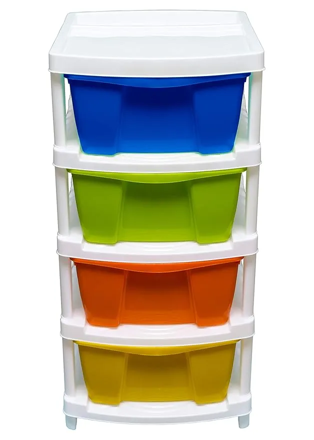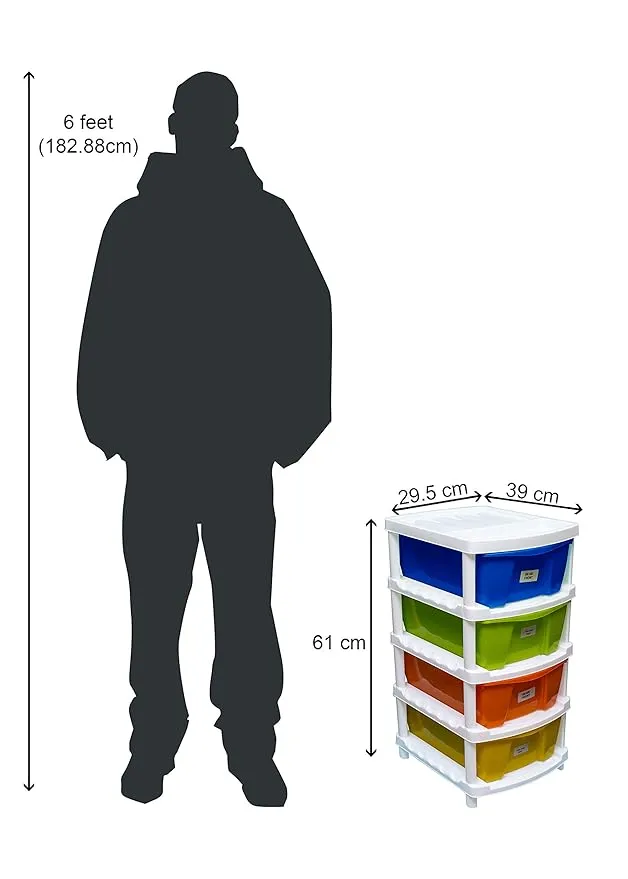 Stay organized with the Neoveer Spacer Multipurpose Drawer 4 Container Plastic Multicolour, designed to keep your essentials neatly arranged and easily accessible. Built from premium-quality plastic, this sturdy and lightweight drawer unit is both durable and easy to maintain. Its four spacious drawers glide smoothly, offering convenient storage for a variety of items including office supplies, accessories, kitchen tools, and makeup products.