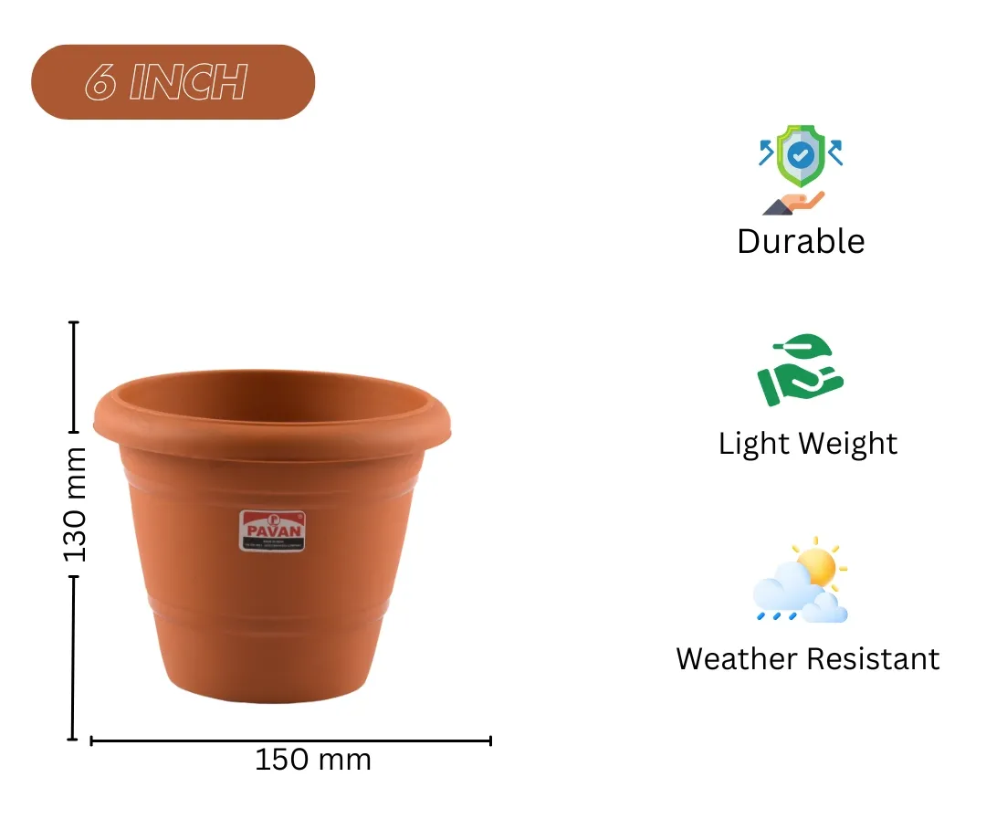 The Pavan Flora Planter 6 Inch is a stylish and durable plant pot perfect for indoor and outdoor gardening. Made from high-quality plastic, it features a sleek design, strong build, and proper drainage to keep your plants healthy and vibrant.