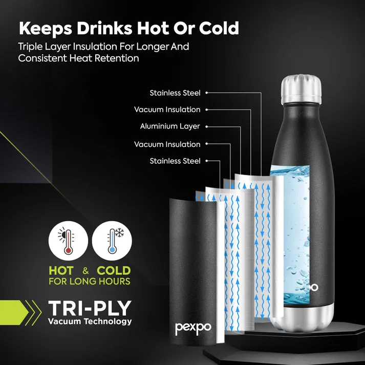 Pexpo Electro 1000ML Hot & Cold Water Bottle | Vacuum Steel Insulated Water Bottle | ISI Certified, Made In India | Hot & Cold Water Bottle