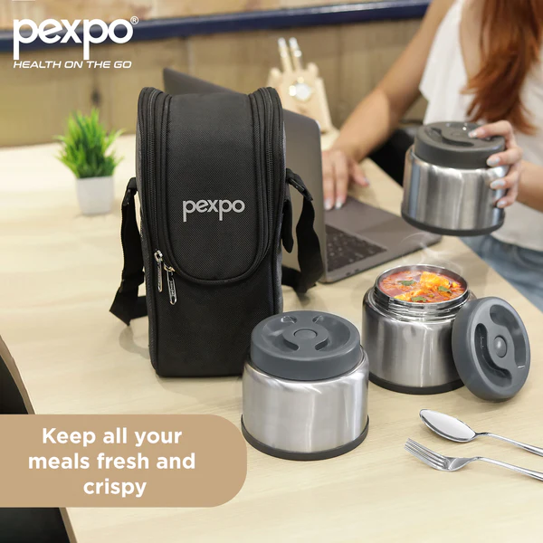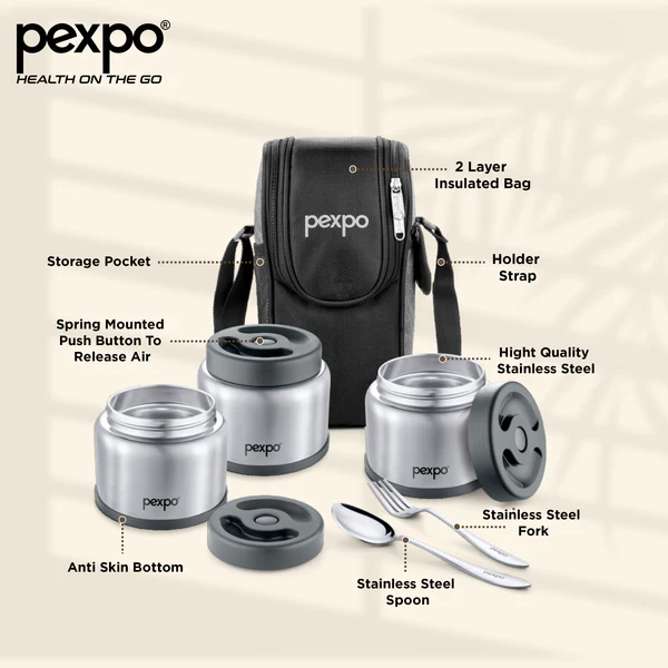 Pexpo Extreme Double Wall Vacuum Insulated Stainless Steel Lunch Box 3 Container