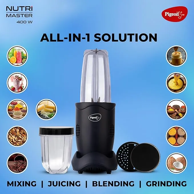 Pigeon Nutri Master 400 W – All-in-One Mixer, Juicer & Grinder (1-Year Motor Warranty)