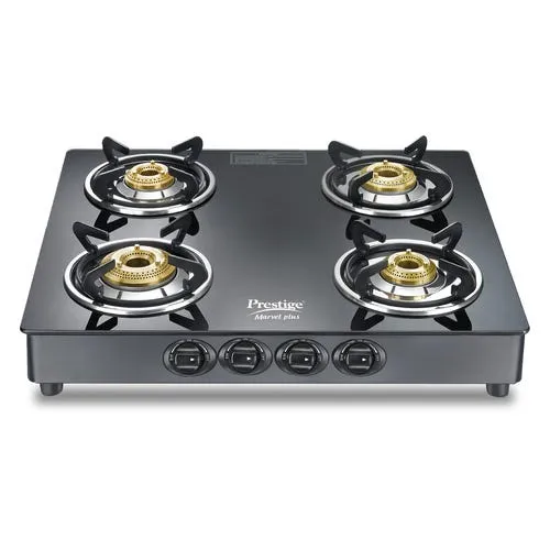 Experience superior performance and modern aesthetics with the Prestige Marvel Plus Square 4 Burner Gas Stove (GTM04). Built with a square-shaped body and a toughened black glass top, this stove enhances your kitchen décor while offering long-lasting durability.