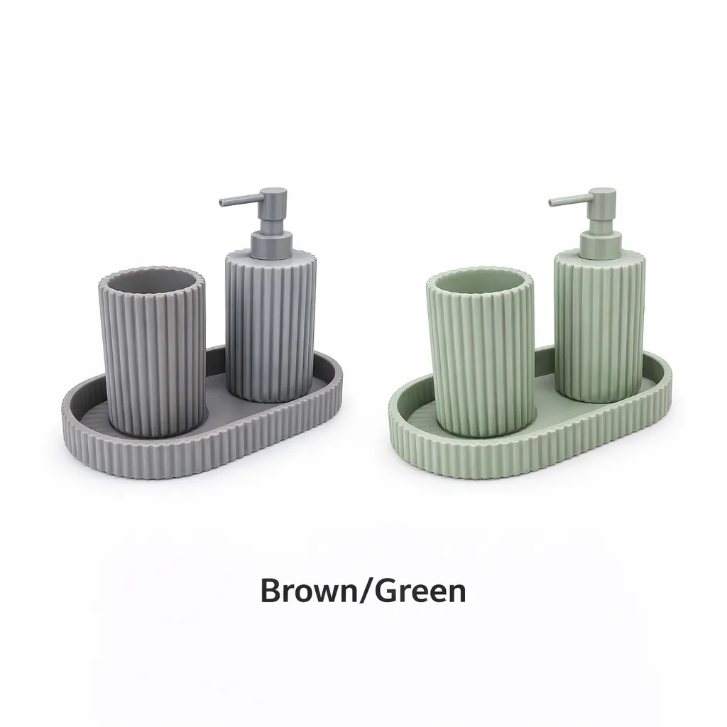 This bathroom accessory set 3pcs includes essential daily-use items that fit perfectly on bathroom countertops while adding a modern aesthetic with its ribbed design. Easy to clean and maintain, it is ideal for contemporary homes, hotels, and luxury bathrooms.