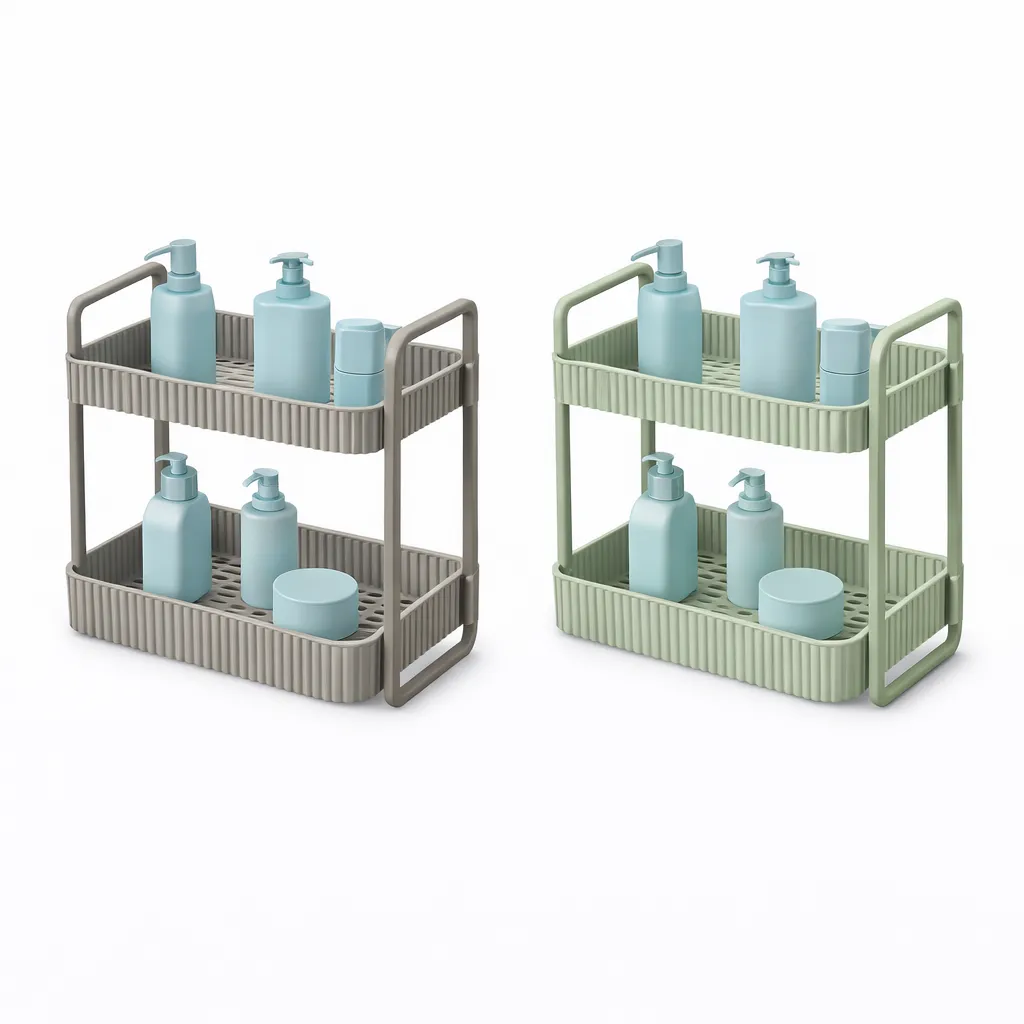 Featuring a two-tier (2-step) design, this storage rack allows easy access to toiletries, skincare products, and grooming items. Crafted from durable and waterproof material, it ensures long-lasting performance with minimal maintenance. The ribbed texture and modern finish add a stylish touch, making it perfect for homes, hotels, and premium bathrooms.