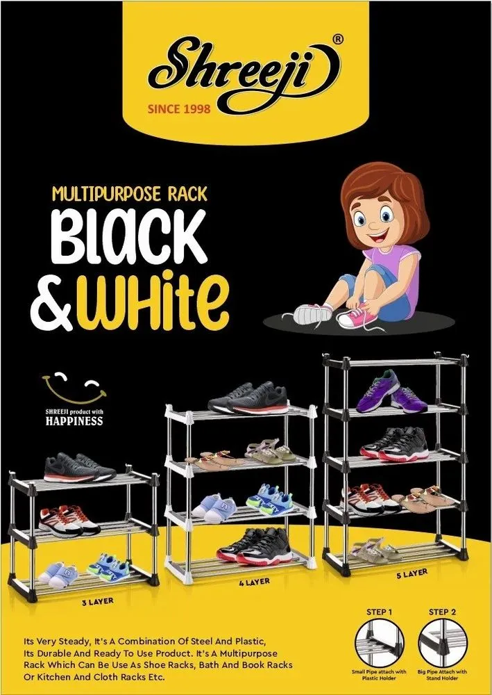 The Shreeji Black & White 3 Layer Multipurpose Rack is a durable and space-saving organizer made from premium plastic. Ideal for use as a shoe rack, storage stand, or utility shelf, it helps keep your home neat and tidy. Lightweight, sturdy, and easy to assemble for everyday convenience.