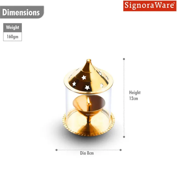 Signoraware Akhand Diya Small Brass with Glass Cover – Long-Lasting Puja Diya for Home Temple (2101)
