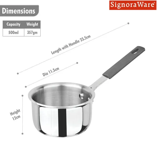 Signoraware Artista Tri-Ply Mini Saucepan 10cm (500ml) – Gas & Induction Friendly | Premium Triply Stainless Steel Cookware (3189)