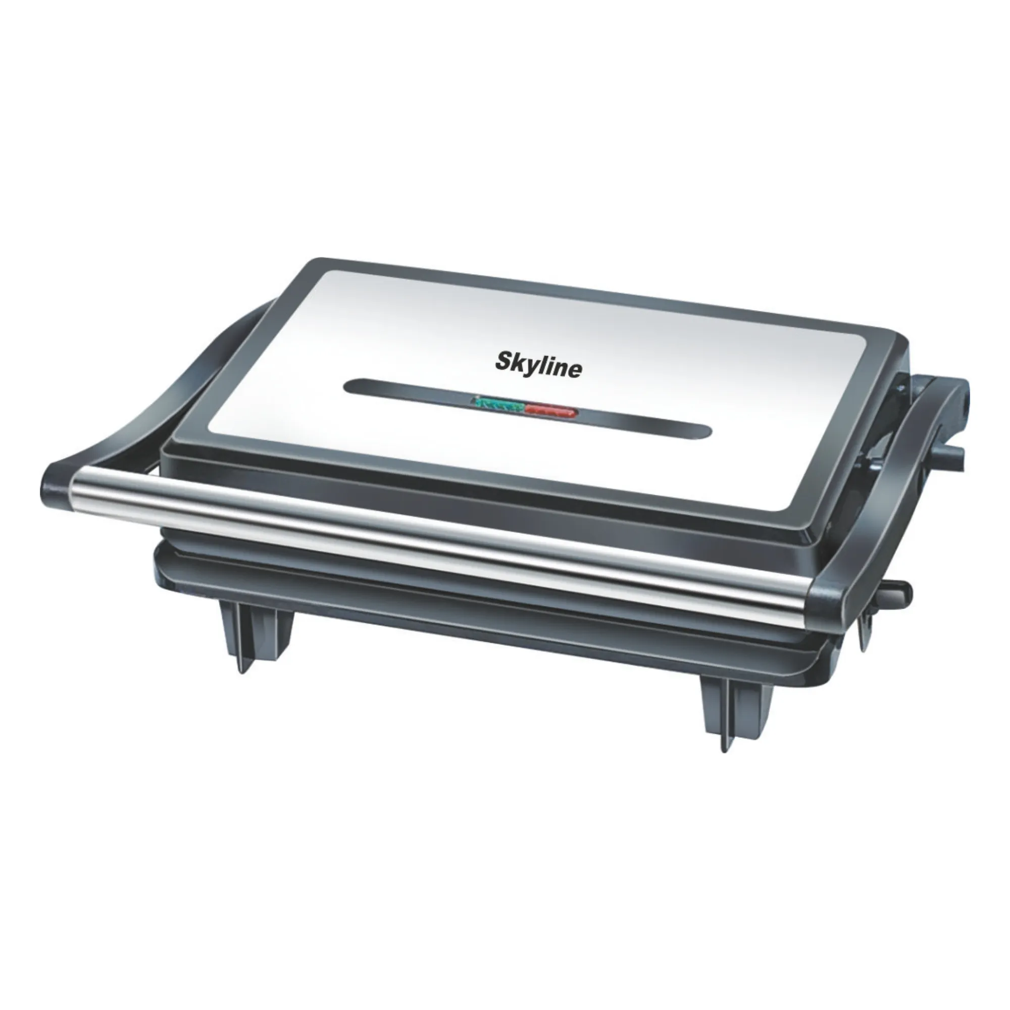 The Skyline VTL-5020 Mini Griller (1200 W) is a compact and efficient kitchen appliance featuring non-stick cooking plates, a cool-touch handle with lock, automatic temperature control, and a floating hinge system — perfect for grilling sandwiches and quick snacks with ease.