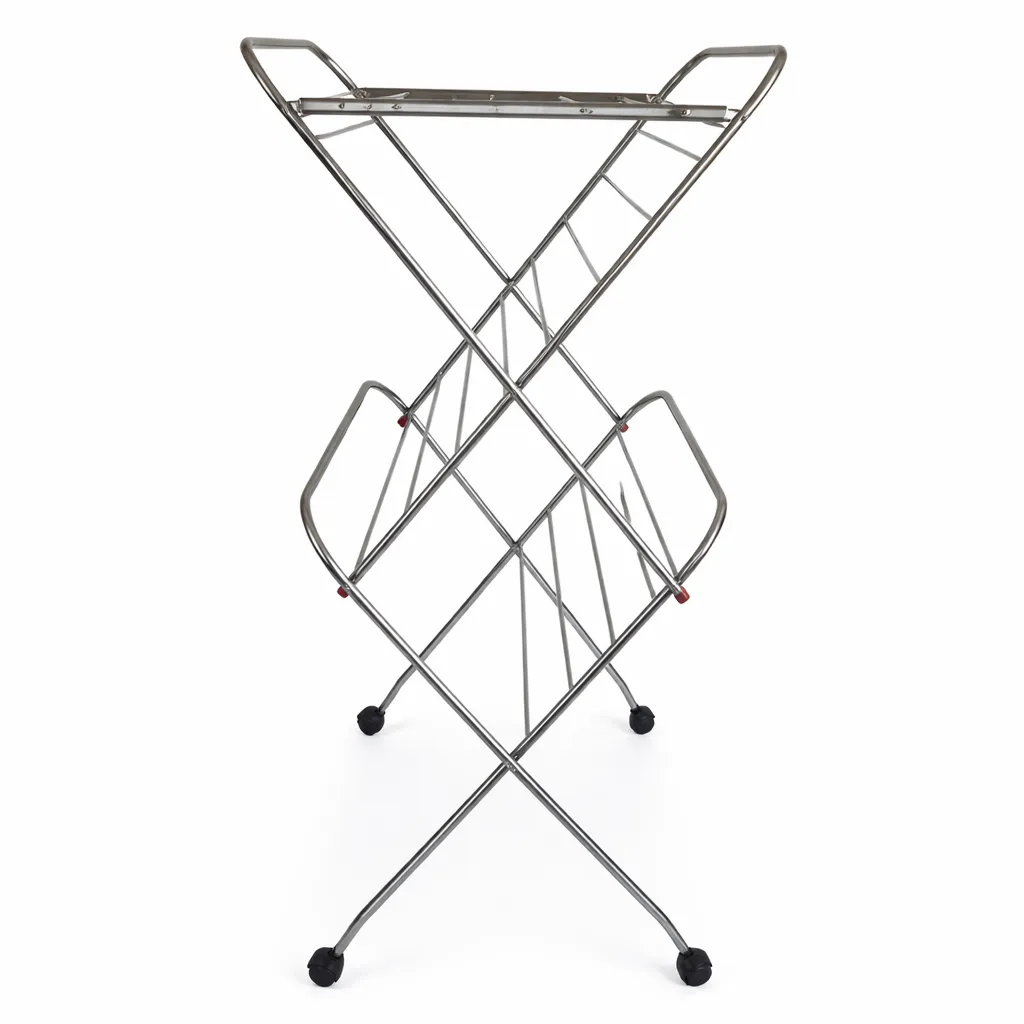 The smooth-rolling wheels allow effortless movement from room to balcony or terrace, while the foldable design ensures compact storage when not in use. Its rust-free stainless steel finish makes it suitable for both indoor and outdoor use, even in humid conditions.